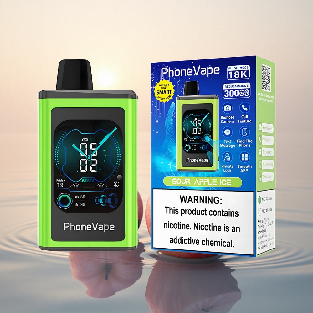 JNR PhoneVape 30000 Pomme Acidulée Glace avec Turbo Mode et Écran Complet