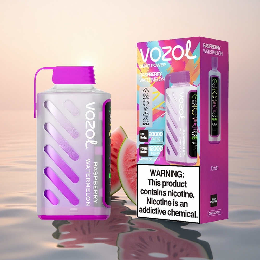 VOZOL Gear Power 20000 Puffs Framboise Pastèque Écran Plein 20mL Dual Mesh
