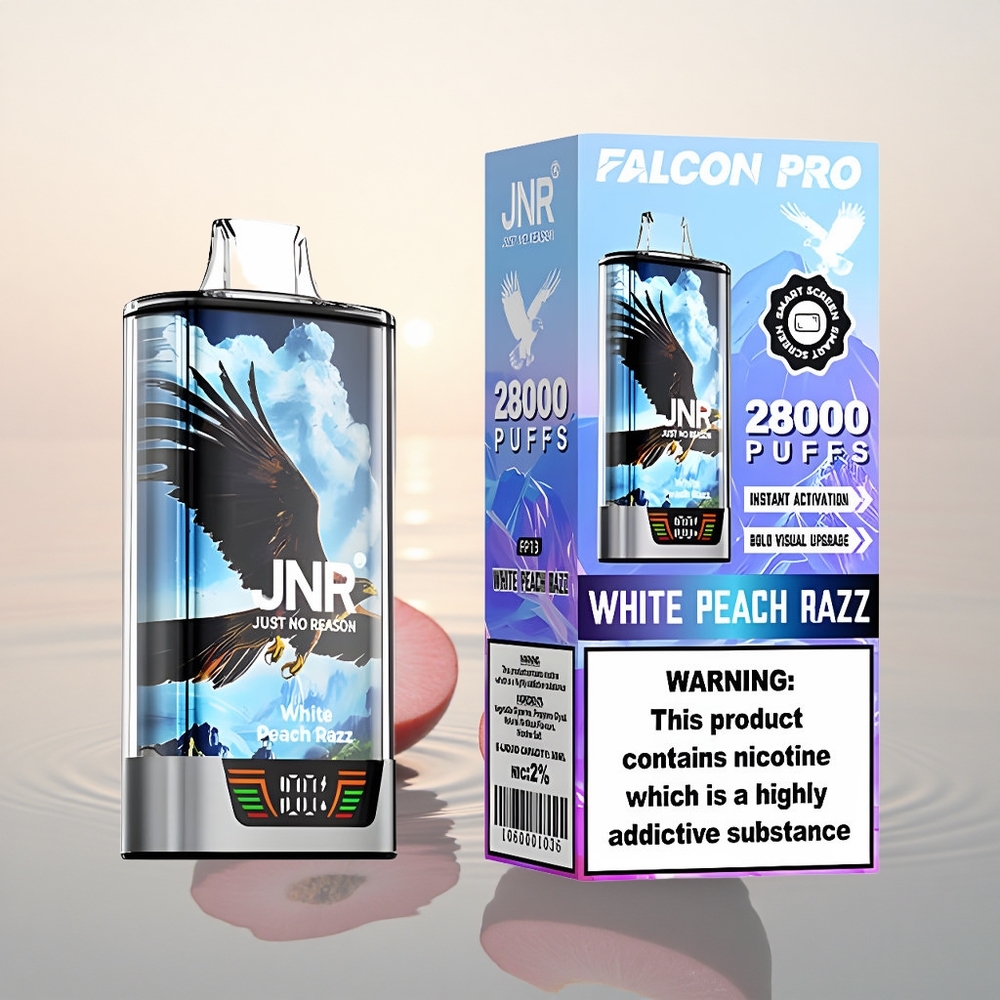 JNR Falcon Pro 28000 Pêche Blanche Framboise 30ml 950mAh Dual Mesh